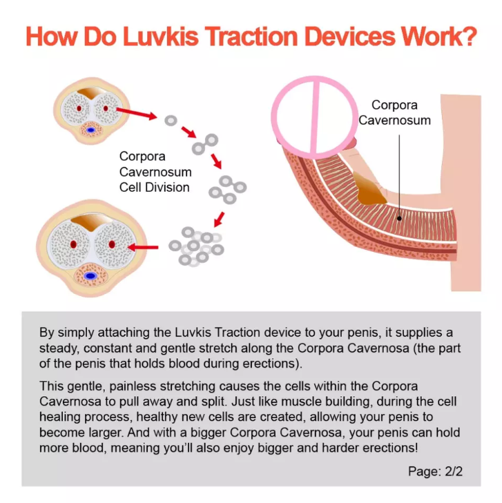 Maximize your potential safely and effectively with The Luvkis Traction System, a professional-grade extender designed to provide steady, constant stretch for penis enlargement and enhanced erections. Traction Mechanism: The device works by supplying a steady, constant and gentle stretch along the Corpora Cavernosa, causing the cells within to pull away and split. Enhanced Erections: This painless stretching process creates healthy new cells, allowing the Corpora Cavernosa to hold more blood, resulting in bigger and harder erections.Extended Course: Recommended for a 6-month course for optimal results. Wearable Design: The device can be used in your regular activities at any time.How it Works: The system attaches easily using a silicone noose fastened in the holders on the bottom of the front piece. Traction is adjusted by turning two thumb screws forward. Complete Kit: The kit includes the main traction device, a comfortable ring, silicone pieces, and multiple adjustment rods. Instructional Disk: The package includes an instruction disk to guide you through safe and effective use.Unlock your full potential with the Luvkis Traction System—proven science for bigger, harder results.