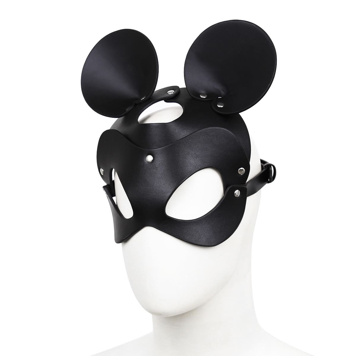 Embrace your mischievous and playful side with The Playful Prowler Mask. This intriguing piece combines a fun, recognizable animal aesthetic with the dominant feel of a secure leather mask, perfect for adding whimsy to control. Distinctive Ears: The mask features large, structured round “mouse” ears attached securely to the headpiece, instantly transforming the wearer’s appearance. Anonymity: The fitted mask covers the eyes and upper face, enforcing anonymity and sensory focus while heightening the suspense of the scene. Mischievous Edge: Ideal for role-play scenarios that call for a playful, yet completely controlled, character. Premium Material: Crafted from durable black faux leather with a smooth finish. Secure Fastening: The mask is secured firmly around the back of the head using a strong adjustable strap and metal buckle for a custom and reliable fit. Metal Detail: Features small metal rivets that hold the structured ears in place, adding a subtle touch of hardware dominance. The Playful Prowler Mask gives you the freedom to be both whimsical and commanding in your scenes.