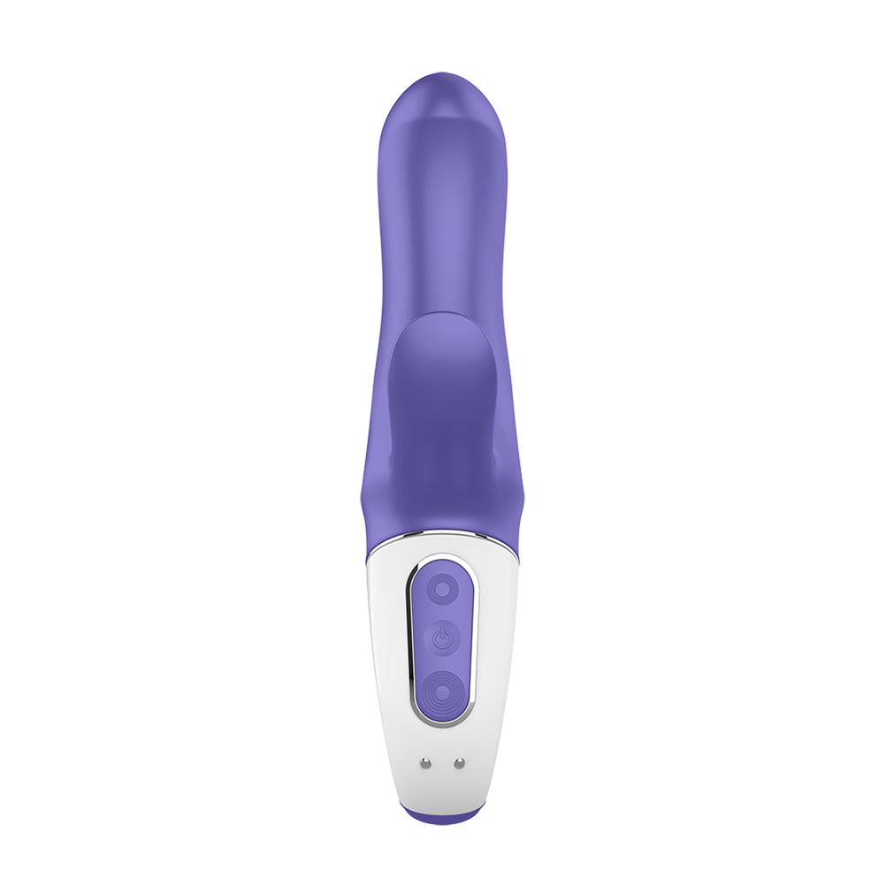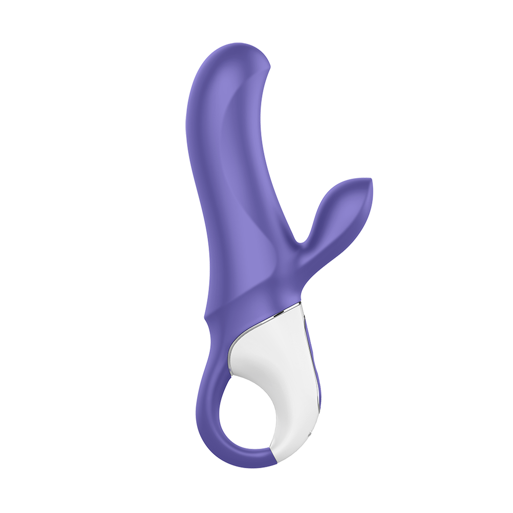 The Satisfyer Vibes Magic Bunny Purple is a high-performance rabbit vibrator designed for simultaneous G-spot and clitoral stimulation. Its ergonomic curves and flexible technology ensure a precise fit for targeted pleasure. G-Spot Targeting: The vibrator features a curved head designed to reach erogenous zones and deliver powerful vibrations. Clitoral Stimulation: A smaller, specially shaped tip focuses super vibrations directly on the clitoris. Dual Motors: Equipped with two strong drive motors to power both stimulation points effectively. Flex Technology: Utilizes flexible technology to better adapt to your body’s unique anatomy. 12 Vibration Modes: Users can choose from 12 different programs, ranging from gentle pulses to high-intensity deep vibrations. Intuitive Handling: The handle is designed for a secure grip, allowing for better control during use. Whisper Mode: Engineered to operate quietly for discreet sessions. High-Quality Materials: Made from full, soft, high-quality silicone that is safe for the body. Waterproof: The device is completely waterproof, making it suitable for use in the bath or shower. Magnetic Charging: Includes a magnetic USB charging cable for convenient power replenishment.