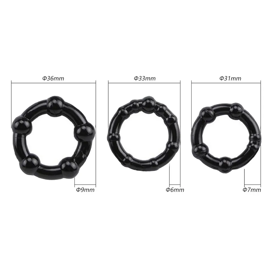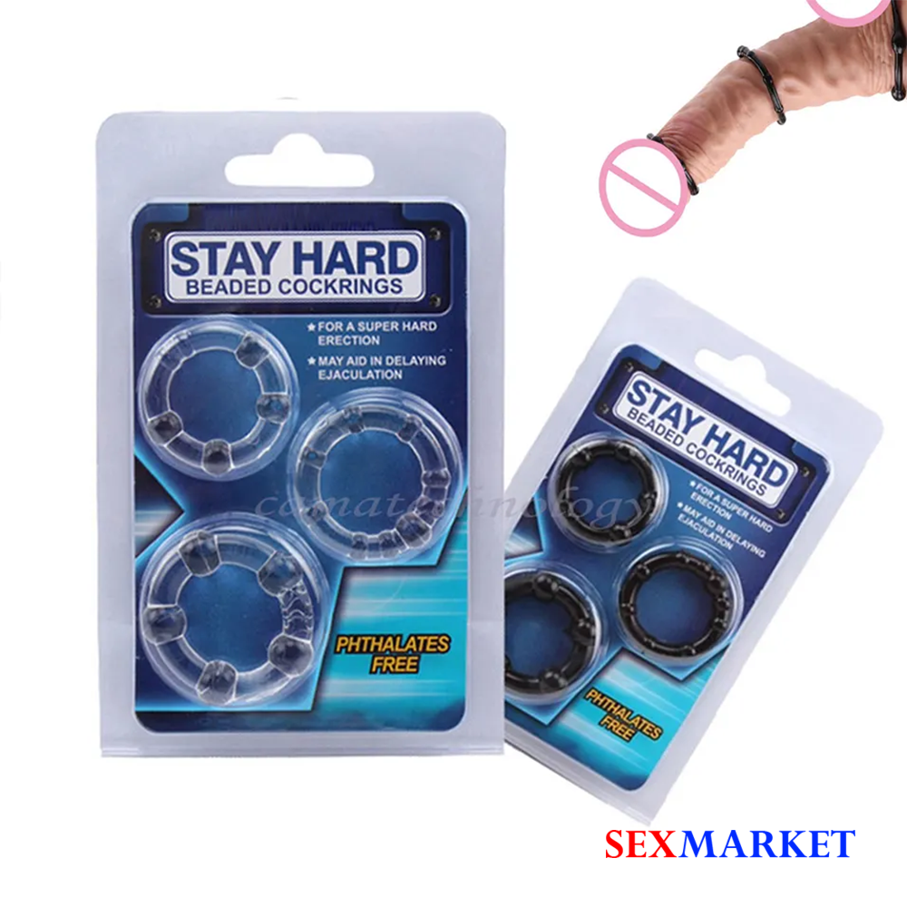 Maximize your erection and intensify your shared pleasure with the STAY HARD Beaded Cock Ring Set—a collection of three beaded rings designed for superior firmness and exhilarating texture. Triple Ring System: The set includes three rings, allowing you to find the perfect fit and stack them for layered intensity. Beaded Stimulation: Each ring features evenly spaced beads to provide novel, stimulating pressure and texture. Prolonged Pleasure: May aid in delaying ejaculation, extending your playtime.