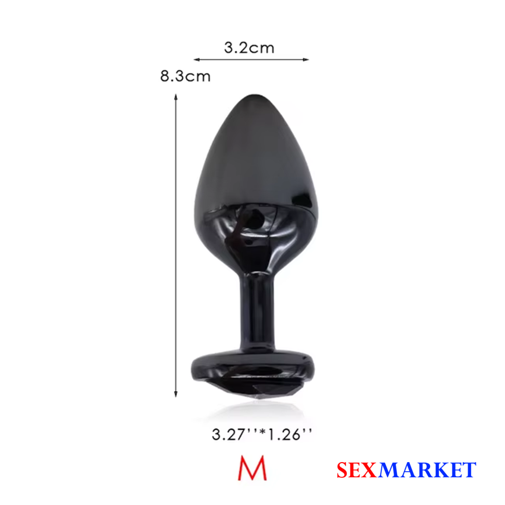 მეტალის შავი ანალური საცობი გულის ფორმით. 83X35mm M size