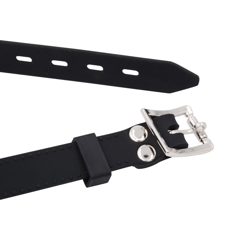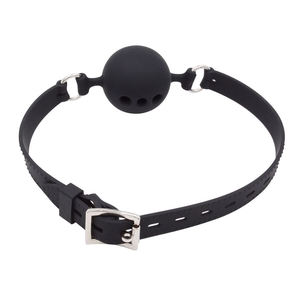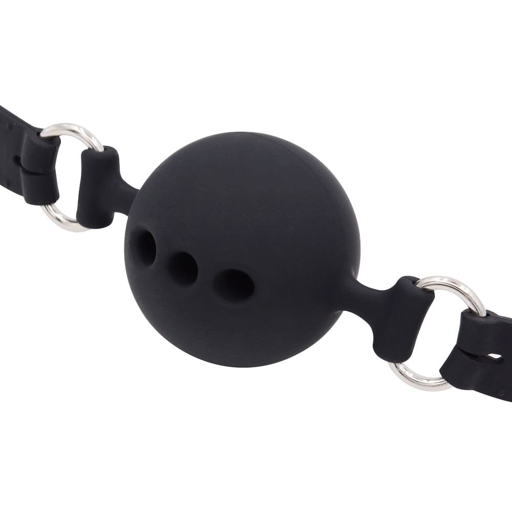 რეგულირებადი პირზე დასამაგრებელი ბურთულა (ე.წ. Ball gag). მასალა: ტყავის შემცვლელი, სილიკონი.