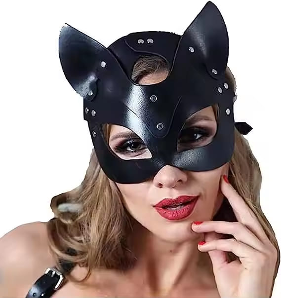 რეგულირებადი კატის BDSM ნიღაბი. მასალა: ტყავის შემცვლელი.