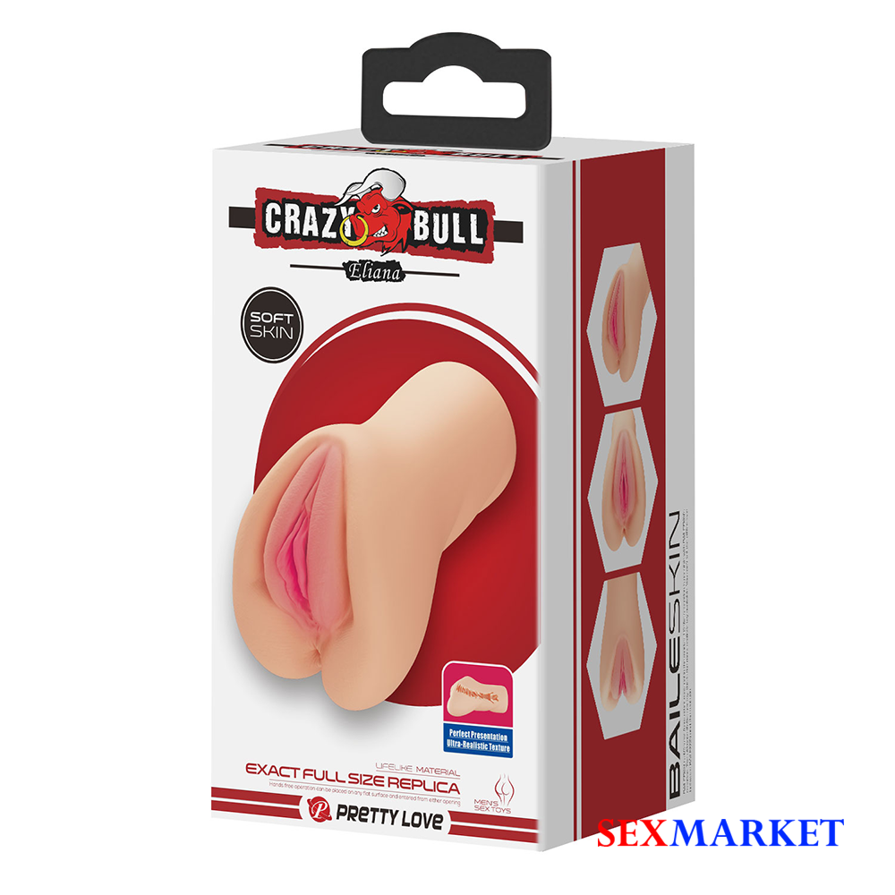 Crazy bull (Eliana) – მაღალი ხარისხის სილიკონის მასტურბატორი მამაკაცებისთვის, ვაგინის იმიტაციით. რეკომენდაცია: გამოიყენეთ წყლის ბაზაზე დამზადებულ ლუბრიკანტთან ერთად. შეინახეთ მხოლოდ სრულად გაშრობის შემდეგ. მთლიანი სიგრძე: 16.5 სმ, სიგანე: 9.5 სმ.