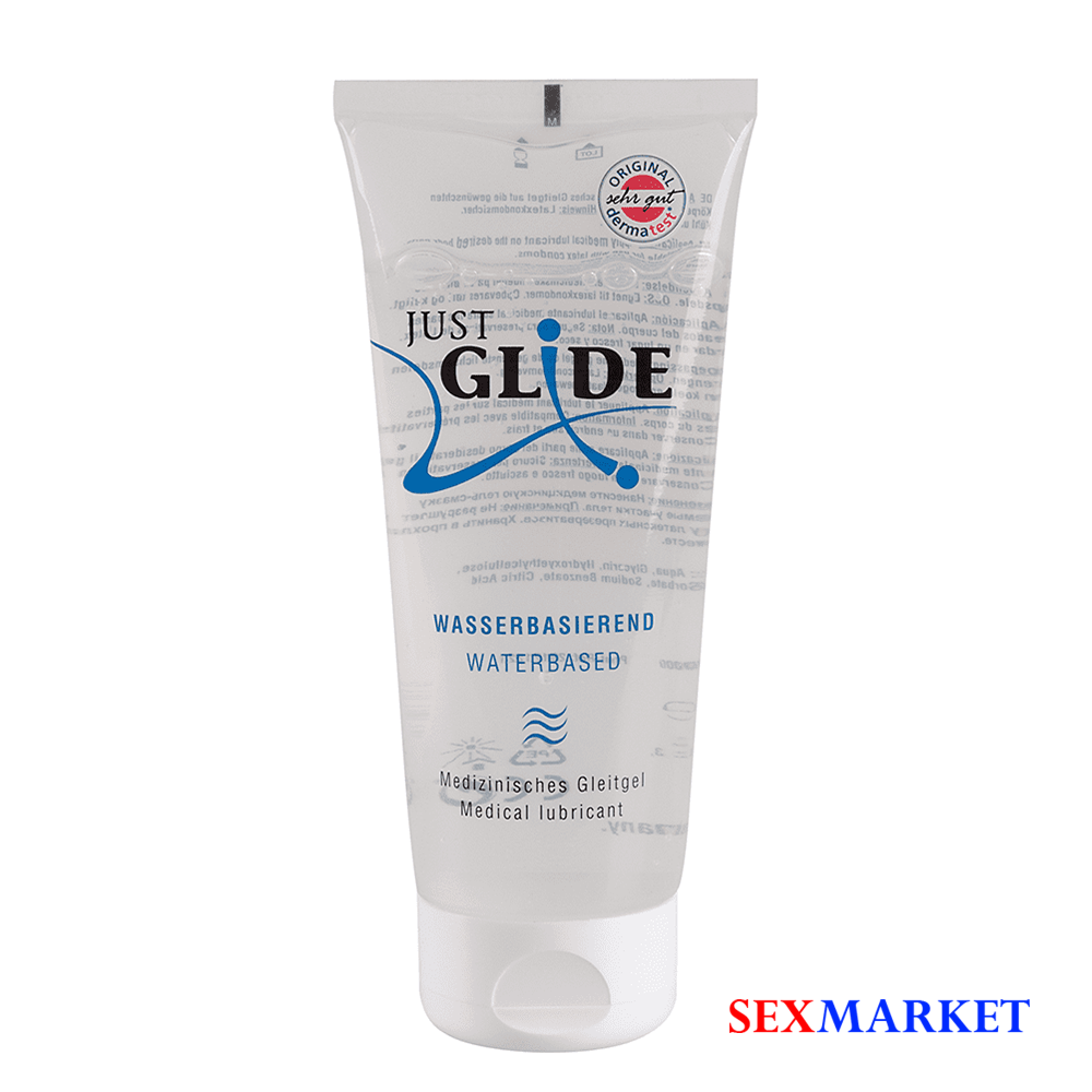 Just Glide Water – 100% ვეგანური, წყლის ბაზაზე დამზადებული ლუბრიკანტი. თავსებადია ლატექსთან (პრეზერვატივი) გამოსაყენებლად, აუმჯობესებს ტენიანოიბას სქესობრივი აქტის დროს. დერმატოლოგიურად დადასტურებულია მისი თავსებადობა მგრძნობიარე კანთან. წყალში ხსნადი, უფერო და უსუნო, ნეიტრალური გემოთი.