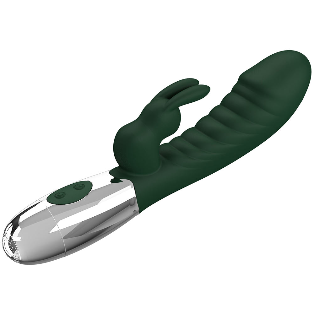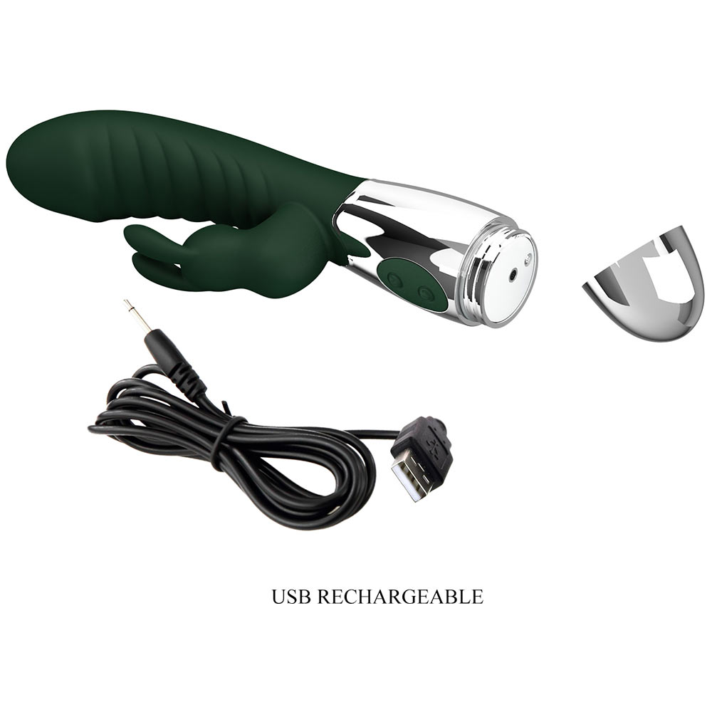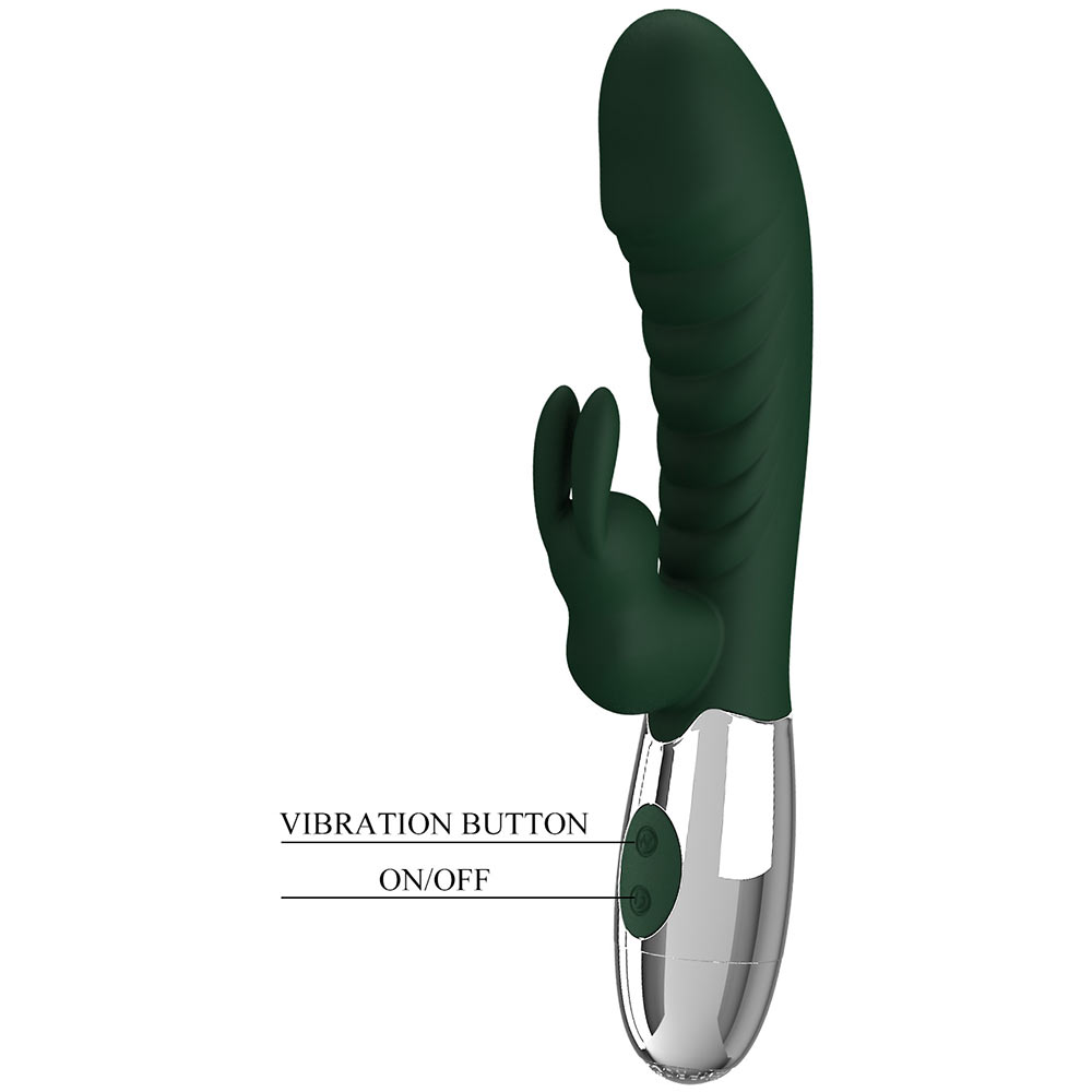 ეს გამორჩეული (Rabbit) ვიბრატორი ნამდვილ შოუს მოგიწყობთ თქვენს საძინებელში. მისი დახვეწილი, სამედიცინო სილიკონისგან დამზადებული ღერძი შექმნილია ვაგინალური სიამოვნებისთვის, ხოლო გარე მოქნილი ყურები ინტენსიურად ასტიმულირებს კლიტორს. ეს მოდელი ნამდვილი „ტრაბახაა“ თავისი შესაძლებლობებით: მას აქვს 30 განსხვავებული ვიბრაციის რეჟიმი, რომლის მეშვეობითაც ღერძი და კლიტორის სტიმულატორი სინქრონულად მოძრაობს. ღილაკზე ერთი თითის დაჭერით შეგიძლიათ მარტივად მართოთ სიჩქარეები, სანამ თქვენს ფავორიტ კომბინაციას არ იპოვით. მოწყობილობა არის სრულიად უსაფრთხო, ჰიგიენური და კანისთვის სასიამოვნო. სათამაშო არის USB კაბელით (კომპლექტშია) დატენვადი, რაც უზრუნველყოფს მძლავრ და უწყვეტ მუშაობას ნებისმიერ დროს. მოწყობილობა არის სრულიად წყალგამძლე, რაც საშუალებას გაძლევთ გაწმინდოთ მარტივად და გამოიყენოთ იგი აბაზანაში.