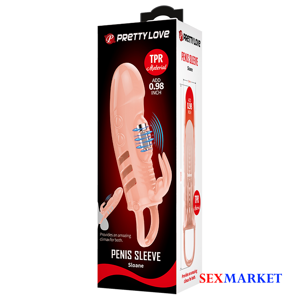 Pretty Love (Sloane) – წყალგაუმტარი წამოსაცმელი ასო ვიბრაციითა და კლიტორის სტიმულატორით. მუშაობს 3 ცალ LR41 ელემენტზე. მასალა: სილიკონი. ასოს მთლიანი სიგრძე: 18.7 სმ, დიამეტრი: 3.8 სმ. გამოიყენეთ ლუბრიკანტთან ერთად.