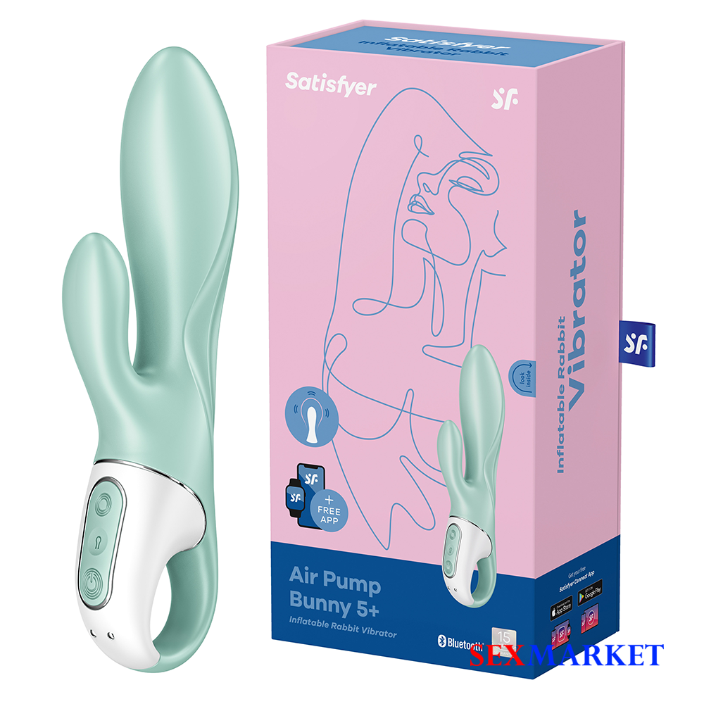 SATISFYER Air Pump Bunny 5+ mint – არის უნივერსალური, გასაბერი “ბანი” ვიბრატორი, რომელიც მზად არის თქვენი ყველაზე მძაფრი სურვილების დასაკმაყოფილებლად. ეს მოდელი გამოირჩევა ინოვაციური დიზაინითა და ორმაგი სტიმულაციით: მას აქვს მოხერხებული მარყუჟისებრი სახელური მარტივი გამოყენებისთვის. გასაბერი ლილვი (Shaft) უზრუნველყოფს მიზანმიმართულ G-წერტილის სტიმულაციას და ავსების არნახულ შეგრძნებას. დამატებითი კლიტორის სტიმულატორი კი ორმაგ სიამოვნებას გპირდებათ. ლილვი არის მყარი და არაელასტიური, მაგრამ გაბერვისას წვერი ოდნავ რბილდება. მიეცით თავს უფლება, პერსონალურად მოარგოთ გაბერვის დონე თქვენს სხეულს, რადგან Air Pump Bunny 5 Connect App საშუალებას იძლევა, ნელ-ნელა გაზარდოთ ინტენსივობა და ზომა. ლილვი 12 წამზე ნაკლებ დროში იბერება და მისი რეგულირება სექსის დროსაც მარტივია. Bluetooth კავშირის საშუალებით, ეს სათამაშო უკავშირდება მფლობელის სმარტფონს და უფასო Satisfyer Connect აპლიკაციის საშუალებით სრულ კონტროლს და სიამოვნების მორგების შესაძლებლობას გაძლევთ. მოყვება USB სატენი.