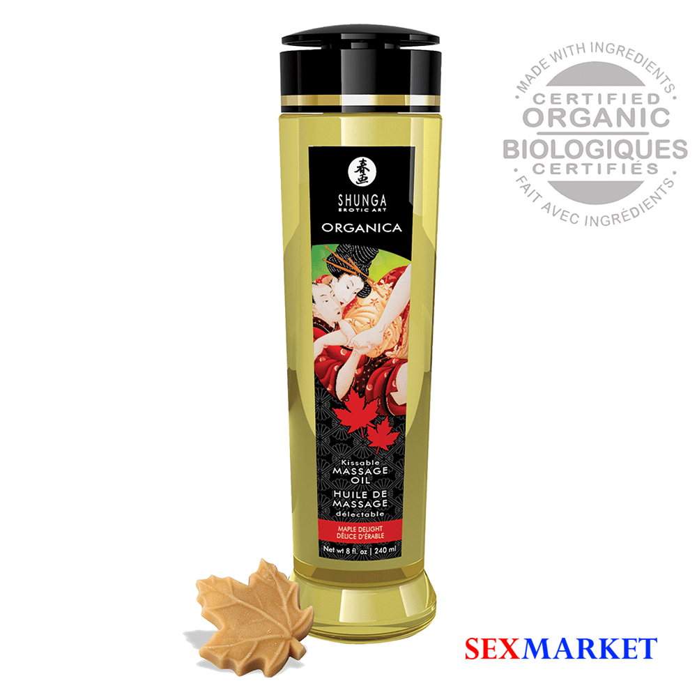 SHUNGA Massage Öl Aphrodisia (Maple Delight) – 100%-ით ნატურალური მასაჟის ზეთი ნეკერჩხლის არომატით. შეიცავს ვიტამინ E-ს (ანტიოქსიდანტი). არ შეიცავს მინერალებსა და ცხოველურ ზეთებს.